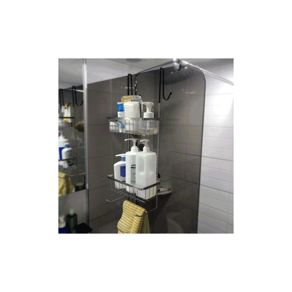 스테인레스 다용도 걸이형 욕실 선반 2단 > 욕실용품