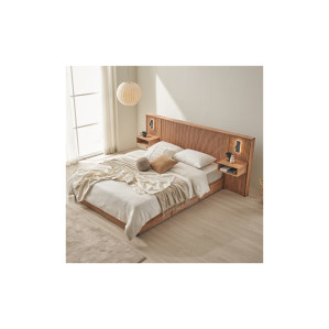 제니아 원목 호텔식 수납 퀸침대Q+LED조명협탁2개
